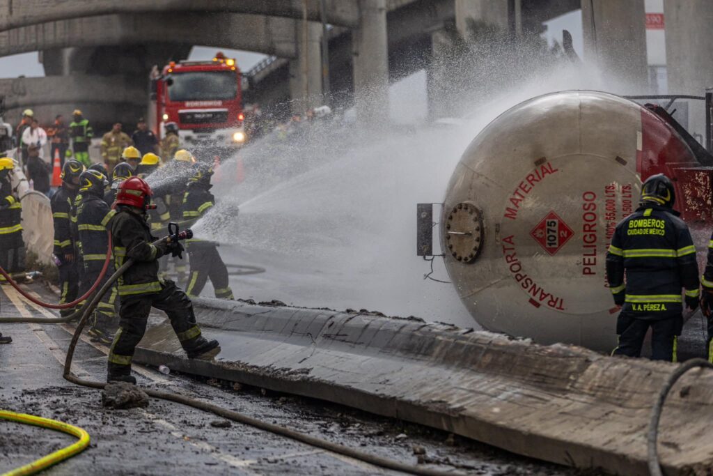 Videos divulgados en redes sociales captaron el momento de la explosión y muestran cómo, tras el vuelco, comenzó a expandirse una espesa nube de gas debajo del Puente de la Concordia, la principal salida de la capital hacia Puebla.