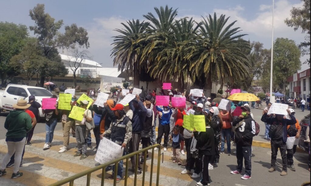 Frente al Palacio Municipal, los inconformes dieron a conocer que apenas el pasado 25 de febrero expusieron a las autoridades de Protección Civil y del Instituto de Verificación Administrativa del Estado de México la problemática, pero a la fecha, dijeron, no los han tomado en cuenta.